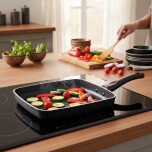 Bifera cuadrada de 28 x 28 cm con interior tricapa antiadherente, ideal para una cocción pareja y sin que los alimentos se peguen. Fabricada en aluminio resistente, cuenta con mango de baquelita ergonómico para un agarre cómodo y seguro. Con capacidad de 4 litros y 5 cm de altura, es perfecta para preparar comidas abundantes y se adapta a cocinas eléctricas y a gas. Funcional, duradera y con diseño moderno para el uso diario.