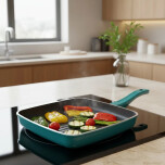Bifera cuadrada de 28 x 28 cm con interior tricapa antiadherente, ideal para una cocción pareja y sin que los alimentos se peguen. Fabricada en aluminio resistente, cuenta con mango de baquelita ergonómico para un agarre cómodo y seguro. Con capacidad de 4 litros y 5 cm de altura, es perfecta para preparar comidas abundantes y se adapta a cocinas eléctricas y a gas. Funcional, duradera y con diseño moderno para el uso diario.
