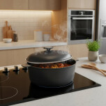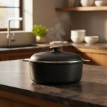 Cacerola antiadherente de 4,1 L (24 cm) ideal para el uso diario. Su revestimiento tricapa permite una cocción pareja, evita que los alimentos se peguen y facilita la limpieza, usando menos aceite. Cuenta con exterior resistente con acabado cerámico, tapa incluida y un diseño práctico, liviano y duradero, perfecto para cualquier cocina.