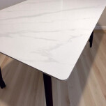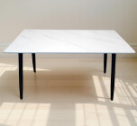 Resistencia y estética natural en una pieza funcional. Tapa símil piedra natural Patas metálicas color negro Medidas: 140 x 80 x 76 cm Perfecta para comedores o salas de reuniones con impronta contemporánea.